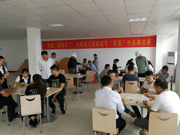 为迎接即将到来的中秋和国庆佳节,同时加强公司各部门之间的联系,方便日常工作的顺利开展,活跃公司内部员工工作气氛,激发公司员工的工作热情。9月21日,“徽盐?锦绣名门”项目公司食堂热闹非凡,公司各部门员工共同参加喜迎双节“掼蛋”扑克牌比赛。