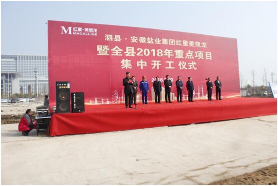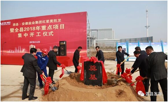 3月23日上午,泗县县委县政府在徽盐·虹都府项目红星美凯龙地块隆重举行泗县·安徽盐业集团红星美凯龙暨全县2018年重点项目集中仪式。县领导张志强、王法立、赵朝法、庞壮、赵明等四大班子成员、安徽盐业集团徽盐地产领导程群、泗县项目全体人员及县直有关单位、40个集中开工项目负责人等出席了奠基仪式。